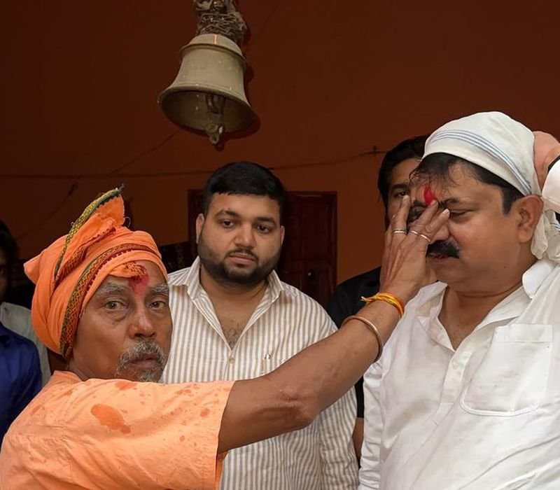 मंदिर में महंत ने पूर्व मंत्री को लगाया तिलक