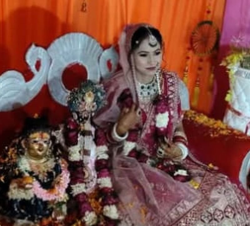 इस्लामनगर के ब्यौर कासिमाबाद में सुरेश शर्मा का परिवार रहता है। उनकी बेटी पिंकी शर्मा है। 28 साल की पिंकी शर्मा पोस्ट ग्रेजुएट हैं। शनिवार की रात पिंकी की शादी हुई और दूल्हा बने कन्हैया। कन्हैया की प्रतिमा रखकर पिंकी ने उनके साथ न केवल सात फेरे लिए बल्कि उनके गले में वरमाला डालकर सात जन्मों तक साथ निभाने का वचन भी लिया।