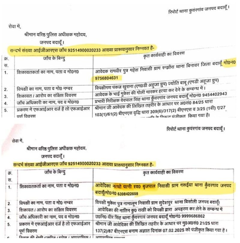 कुल मिलाकर बदायूं पुलिस को ज्योति मेहंदीरत्ता और पंकज खुराना का नाम मुकदमे से निकालने की इतनी जल्दी रही कि उसने आईजीआरएस पर पड़ी शिकायतों को भी इतनी जल्दी निपटा दिया। यही वजह रही कि एक ही संदर्भ संख्या पर दो-दो शिकायतों का निस्तारण कर दिया गया।