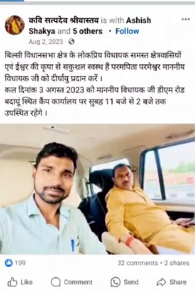 बताते हैं कि जिन सत्यदेव श्रीवास्तव की ये आईडी है वह भाजपा विधायक हरीश शाक्य के समर्थक हैं। हालांकि उन्हें विधायक का पीआरओ भी बताया जा रहा है लेकिन इसमें कितनी सच्चाई है, इसकी पुष्टि 'सब की बात' न्यूज डिजिटल चैनल नहीं करता।