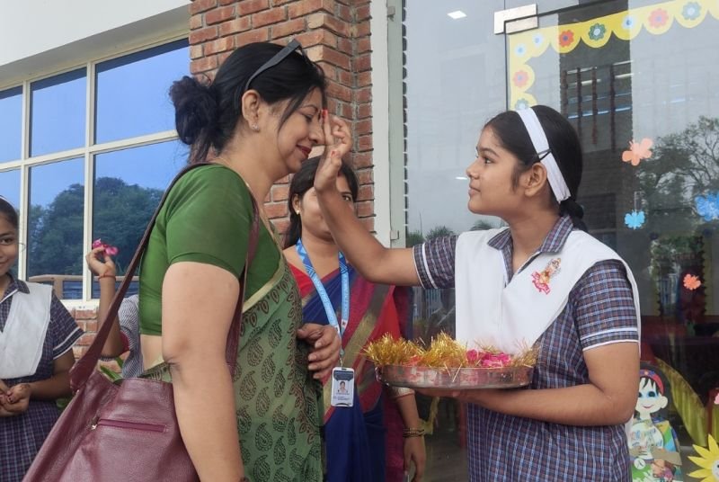 प्रधानाचार्य अनुपम प्रकाश वैश्य तथा शैक्षिक अधिकारी दुर्गेश झा ने पुष्पगुच्छ भेंट कर अतिथियों का स्वागत किया। कार्यक्रम की संचालक अध्यापिका ऋचा सिंह एवं शिल्पी चटवाल ने संयुक्त रूप से सभी का परिचय कराया। विभाग प्रमुख कीर्ति शर्मा