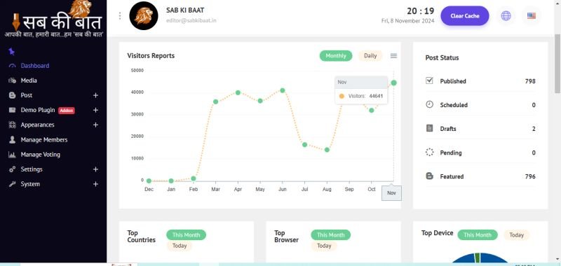 सब की बात न्यूज। डिजिटल चैनल 'सब की बात न्यूज' व यू-ट्यूब चैनल को प्रदेश के हर जिले में संवाददाताओं की आवश्यकता है। करीब आठ माह पहले शुरू हुए 'सब की बात' न्यूज चैनल के समाचारों को प्रतिमाह 50 हजार से अधिक लोग पढ़ते हैं, जिसमें देश के अलावा विदेशों की पाठकों भी खासी संख्या है। नवंबर में तो केवल आठ दिनों में ही 44 हजार का आंकड़ा पार हो चुका है जो अभी और आगे बढ़ेगा।