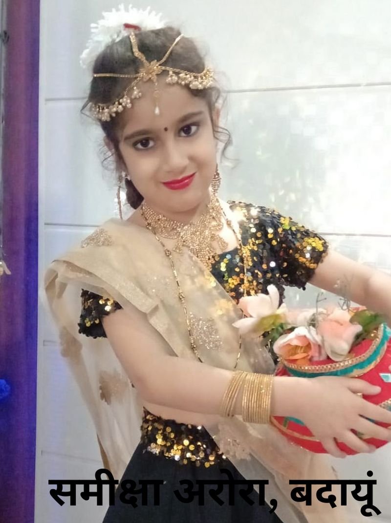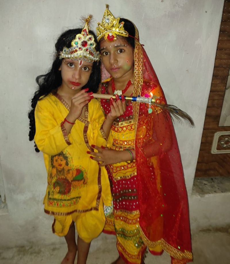 - रेहड़िया में राधा-कृष्ण स्वरूप में सजे बच्चे-