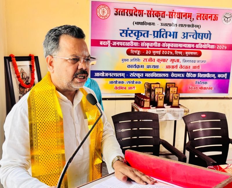 बदायूं। कार्यक्रम के मुख्य अतिथि भाजपा जिलाध्यक्ष राजीव कुमार गुप्ता ने कहा कि हमारे देश की संस्कृति को जन-जन तक पहुंचाने के लिए हमारी प्रमुख भाषा संस्कृत का प्रचार प्रसार बहुत आवश्यक है। इस प्रतियोगिता का आयोजन संस्कृत संस्थान