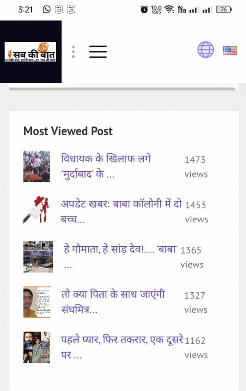 रोजाना औसतन डेढ़ से दो हजार लोग हमारी वेबसाइट पर विजिट कर रहे हैं। अभी इस सफर में लगातार और आगे बढ़ना है, जिसमें आप सभी का सहयोग और प्यार बेहद जरूरी है। कोशिश रहेगी कि आपको न केवल घटनाओं का अपडेट देते रहें बल्कि राजनीतिक, सामाजिक समेत सभी मुद्दों से भी समय समय पर अवगत कराते रहें। हमारे फेसबुक पेज और यूट्यूब चैनल को भी सबस्क्राइब व फॉलो करके हमारा मनोबल बनाए रखें। लिंक नीचे दिए हैं।