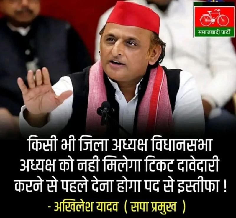 सपा के राष्ट्रीय अध्यक्ष अखिलेश साफ कह चुके-किसी भी जिलाध्यक्ष या विधानसभा क्षेत्र अध्यक्ष को नहीं मिलेगा टिकट