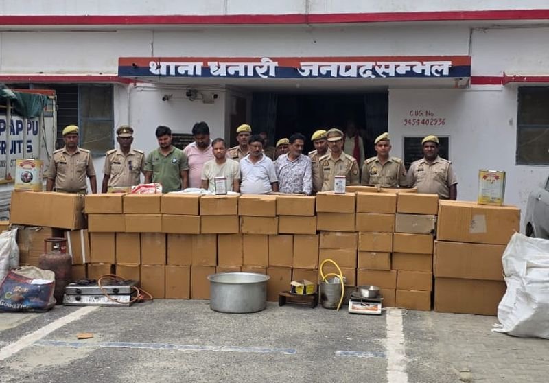 सम्भल के धनारी में पुलिस ने चेकिंग के दौरान जब्त किया 923 लीटर नकली घी, पैकिंग सामग्री व बनाने के उपकरण भी मिले