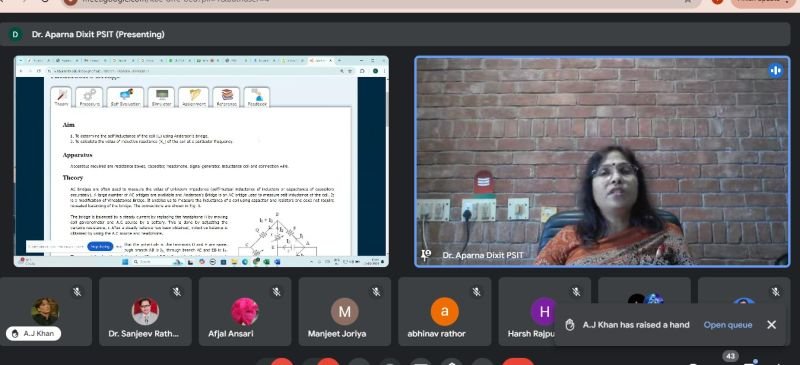 डॉ अपर्णा ने विद्यार्थियों को इसके पूर्व वर्चुअल माध्यम से कराए गए प्रयोगों में आई समस्याओं समाधान भी किया। देश के 18 राज्यों के प्रतिभागी छात्र-छात्राओं एवं प्रोफेसर्स ने वर्चुअल लैब से हो रहे लाभों के बारे में संतुष्टि व प्रसन्नता व्यक्त किया। महाविद्यालय के प्राचार्य डॉ. नरेंद्र कुमार बत्रा ने ऑनलाइन राष्ट्रीय कार्यशाला में लगातार चौथे दिन भी सभी प्रतिभागी प्रोफेसर तथा विद्यार्थियों का अभिनंदन किया।