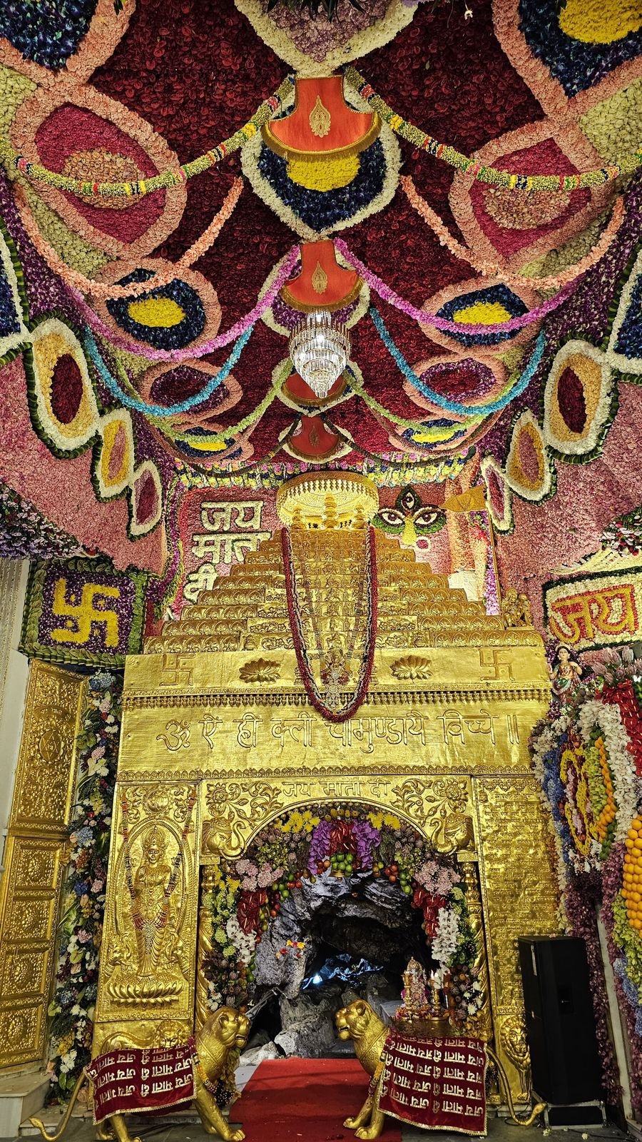 नई दिल्ली। नवरात्र के अवसर पर माता वैष्णो देवी धाम पर देशी और विदेशी फूलों व फलों से विशेष सज्जा की गई। दुनिया के चार देशों और आठ भारतीय शहरों से 70 ट्रकों के जरिए यहां तक पहुंचे तरह-तरह के फूलों से मां का दरबार सजाया गया। वैष्णो देवी धाम की इस अनोखी छटा को देखकर माता के दर्शनों के लिए पहुंचे श्रद्धालु मंत्रमुग्ध नजर आए।
