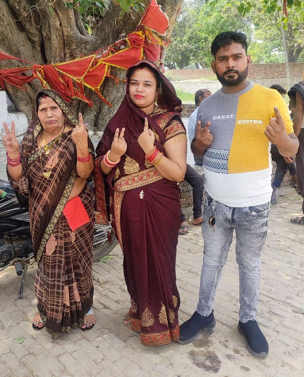युवाओं ने परिवार के साथ किया मतदान
